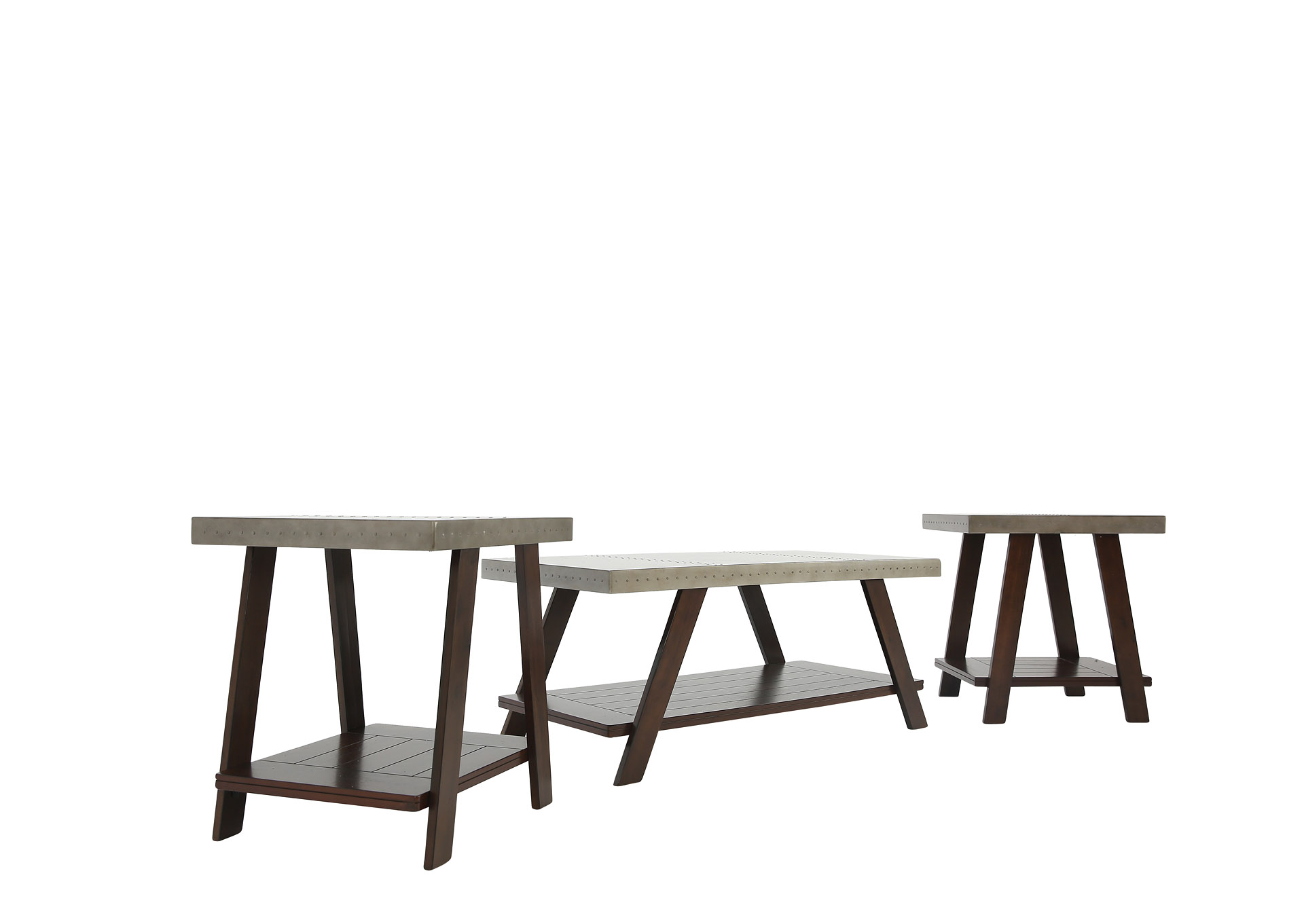 Bernards Winslow 3 Piece Occasional Table Set With Saw Horse Style Bases Wayside Furniture Occasional Groups