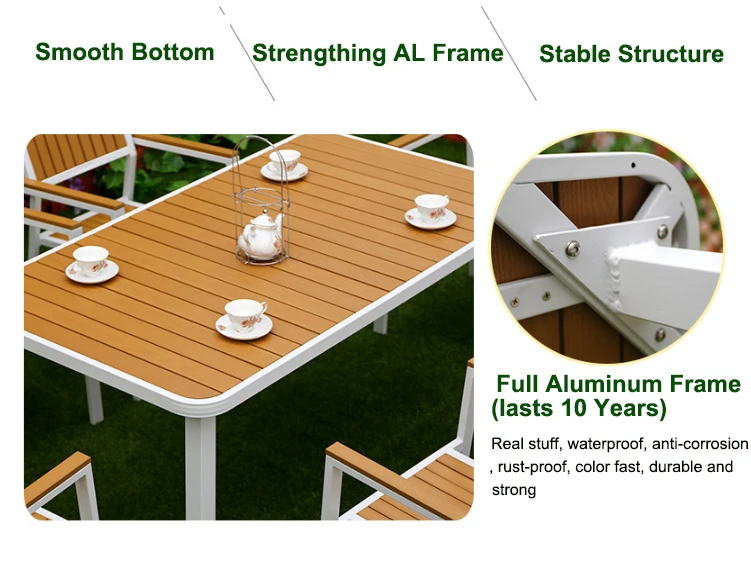 Able Outdoor Aluminum Dining Table With Faux Wood Table Top In