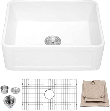 Lordear 24 Inch Farmhouse Kitchen Sink White Apron Front Fireclay