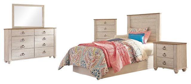 Ashley Willowton 4 Piece Panel Bedroom Set White Farmhouse