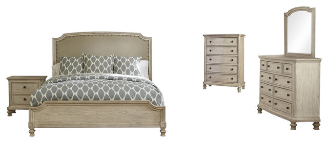 Ashley Demarlos 5 Piece Bedroom Set Upholstered With Chest White