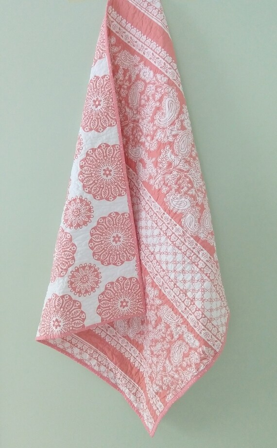 Pink Coral Floral Paisley Baby Girl Modern Farmhouse Crib Etsy