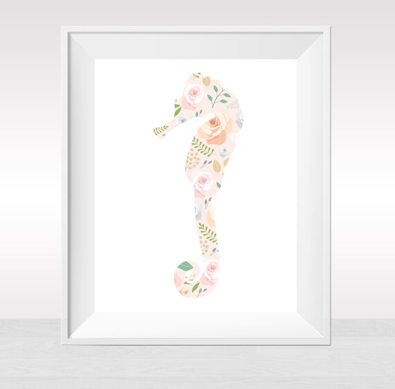 Printable Flower Seahorse Baby Girl Nursery 8x10 Boho Rustic Etsy