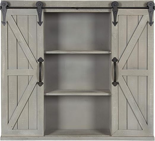Farmhouse Wall Cabinet Rustic Barn Door Storage Cupboard Shelf