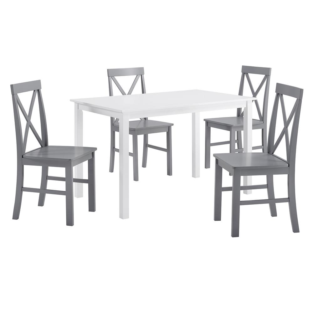 Welwick Designs 5 Piece White And Grey Solid Wood Farmhouse Dining