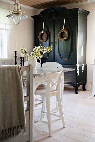 Farmhouse Dining Table With White Dove And Black Ebony Stained
