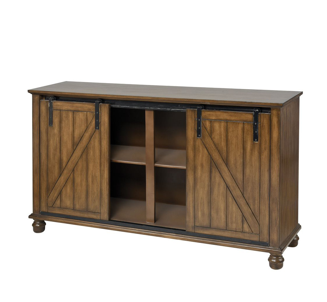Gracie Oaks Dmitri Barndoor In Farmhouse Cherry Accent Cabinet