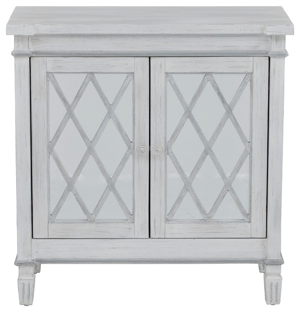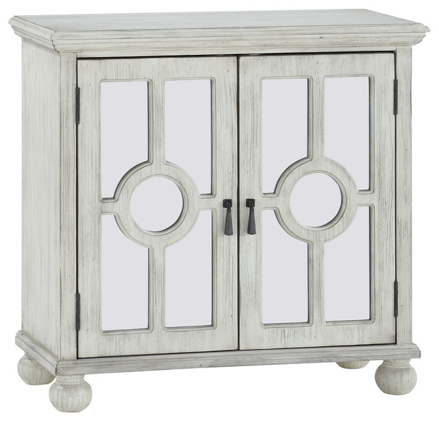 Muntin Mirrored 2 Door Accent Chest White Farmhouse Accent