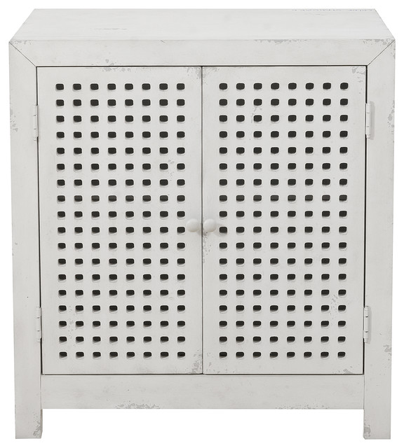2 Door Pierced Grid Accent Chest Farmhouse White Farmhouse