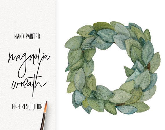 Digital Watercolor Magnolia Wreath Clip Art A Farmhouse Etsy