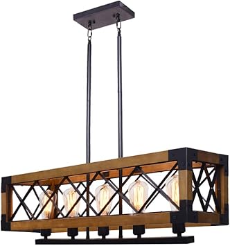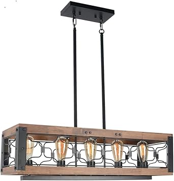 Beuhouz Farmhouse Chandelier Light Metal And Wood Kitchen Island