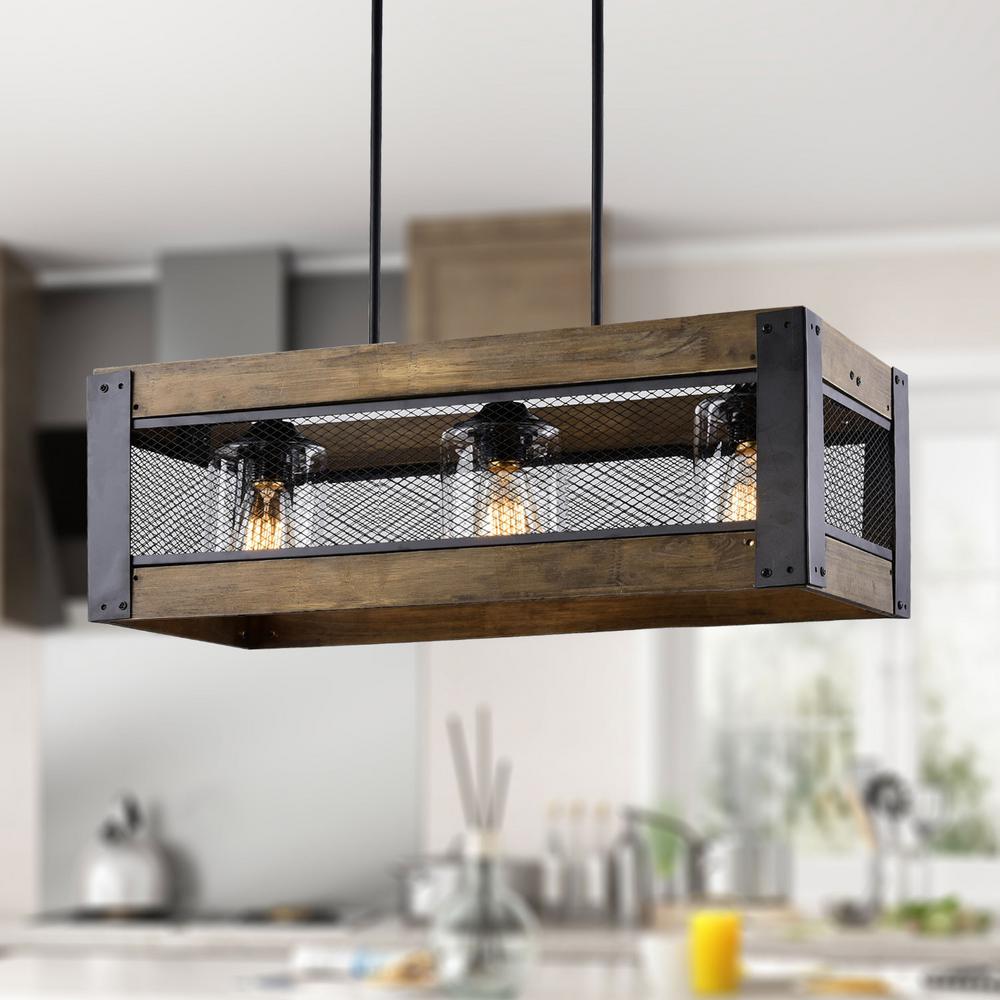 Giluta Kitchen Island Pendant Light Rectangle Wood Metal