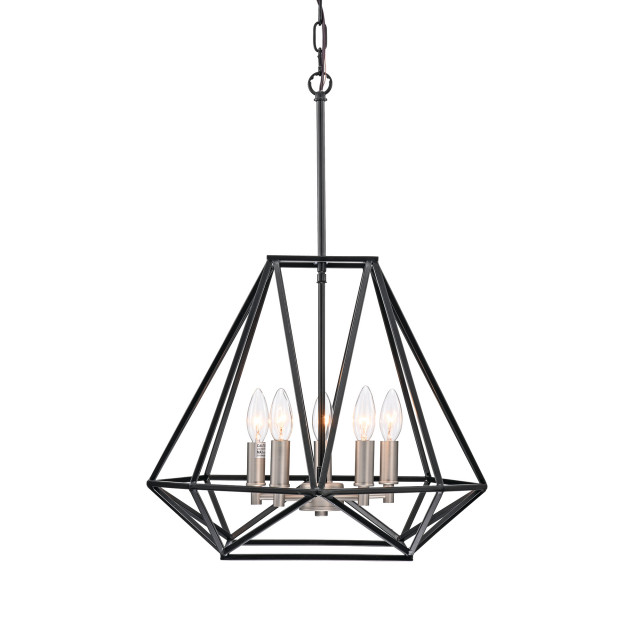 5 Light Matte Black And Brushed Nickel Geometric Cage Lantern