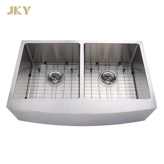 33 Inch Stainless Steel Curved Front Farm Apron 60 40 Double Bowl