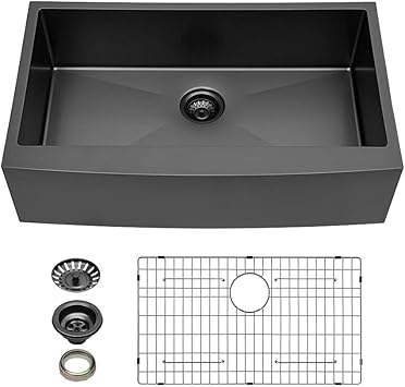 Lordear 36 Inch Farmhouse Sink Apron Front 16 Gauge Gunmetal Matte