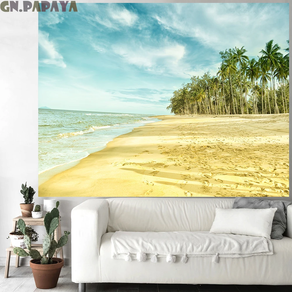 Gold Beach Tapestry Scenic Wall Hanging Farmhouse Decor Coconut