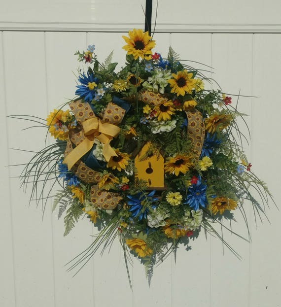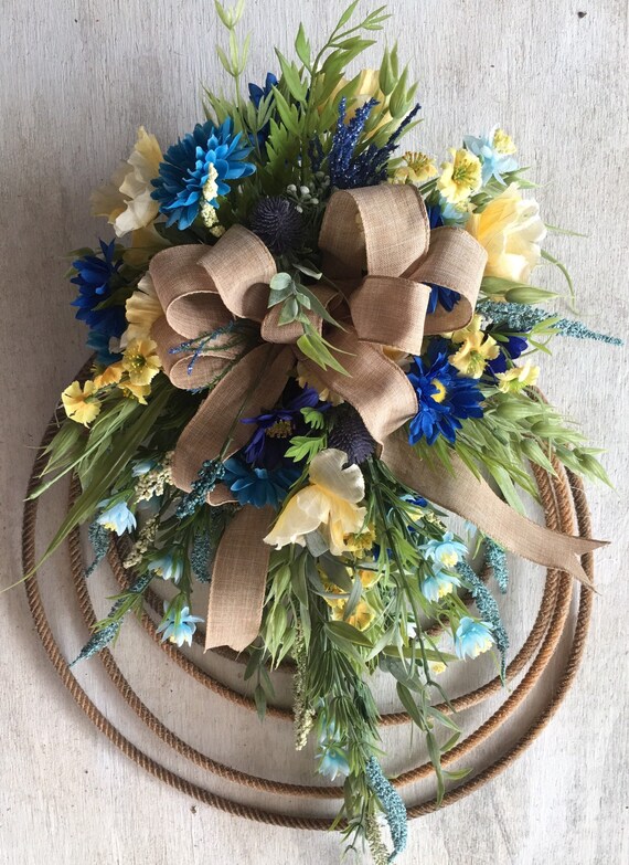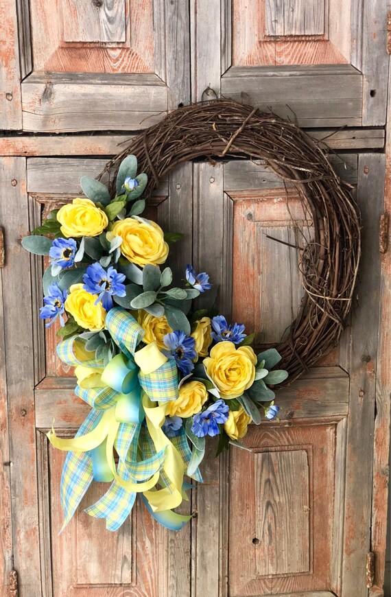Spring Lariat Wreath Blue And Yellow Farmhouse Wreath Etsy