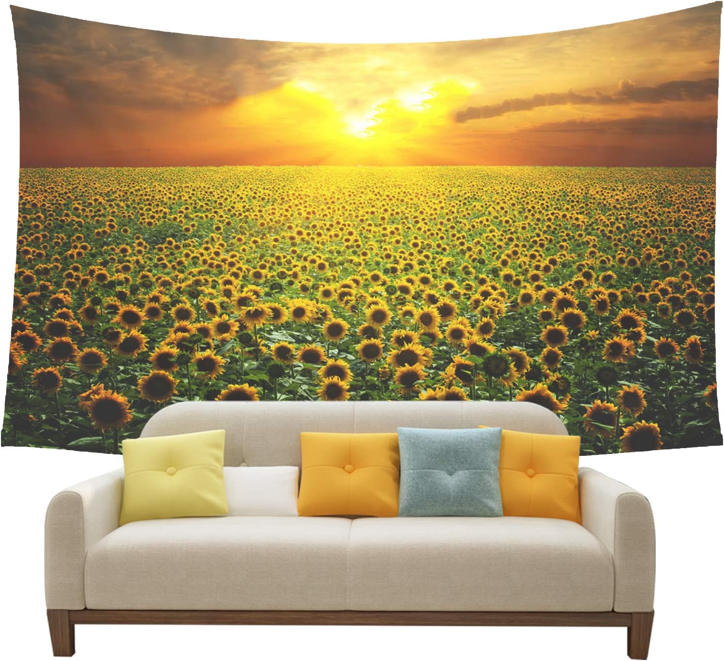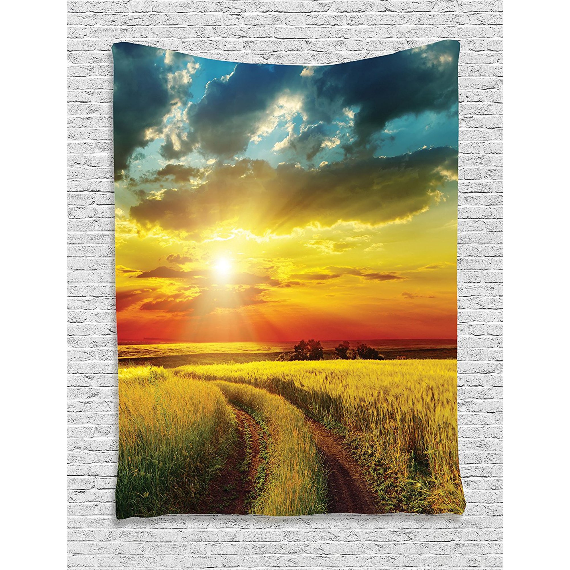 Farmhouse Decor Collection Sunset Over Field Sunlights Bursting