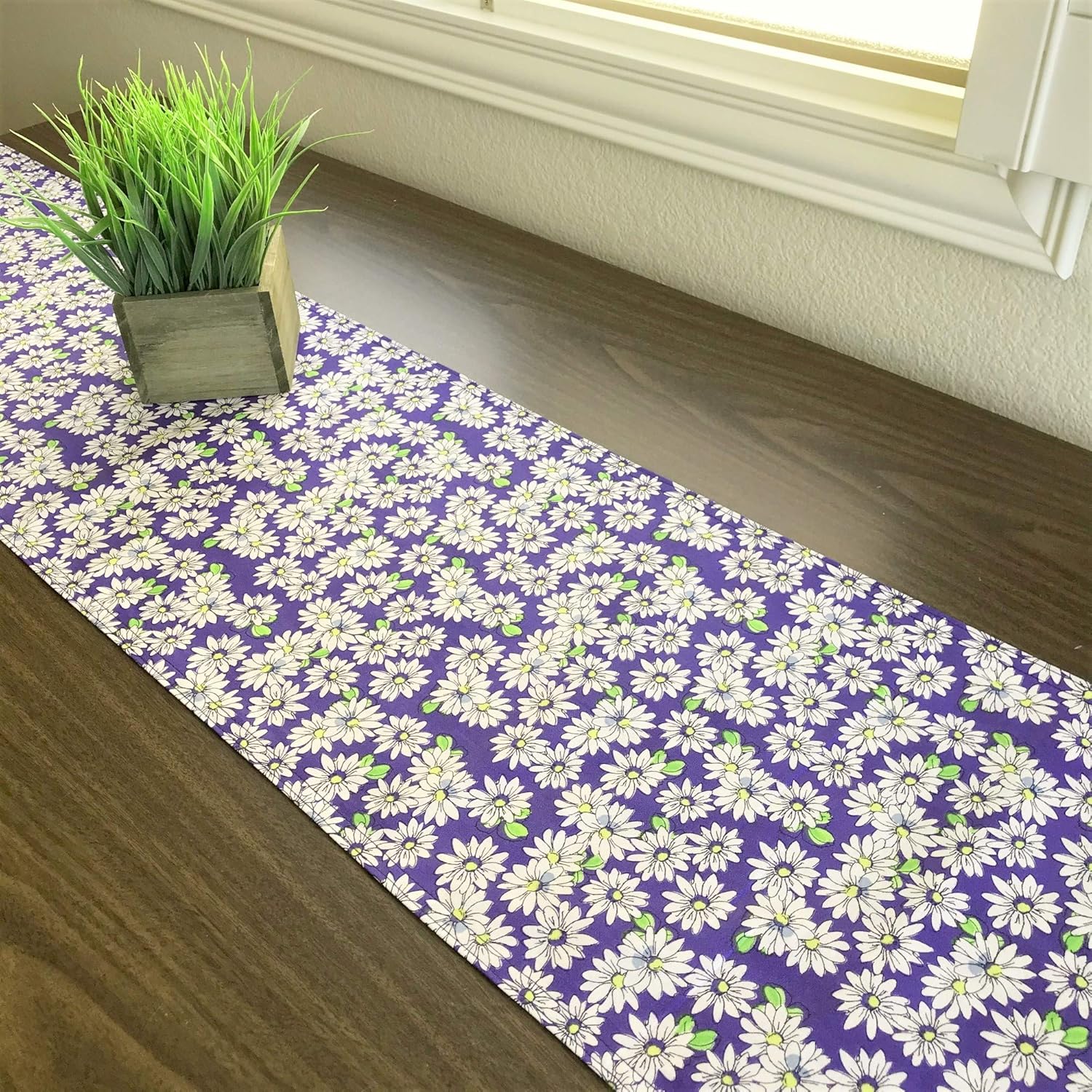 Amazon Com Daisy Table Runner Periwinkle Blue White Yellow Lime