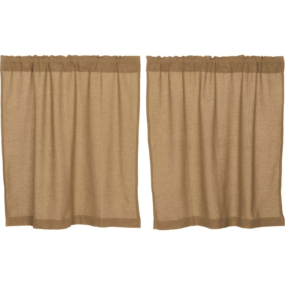 Natural Tan Farmhouse Kitchen Curtains Burlap Chocolate Rod Pocket