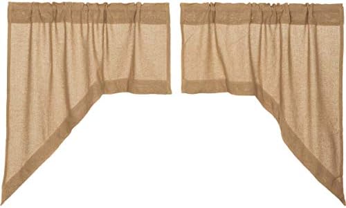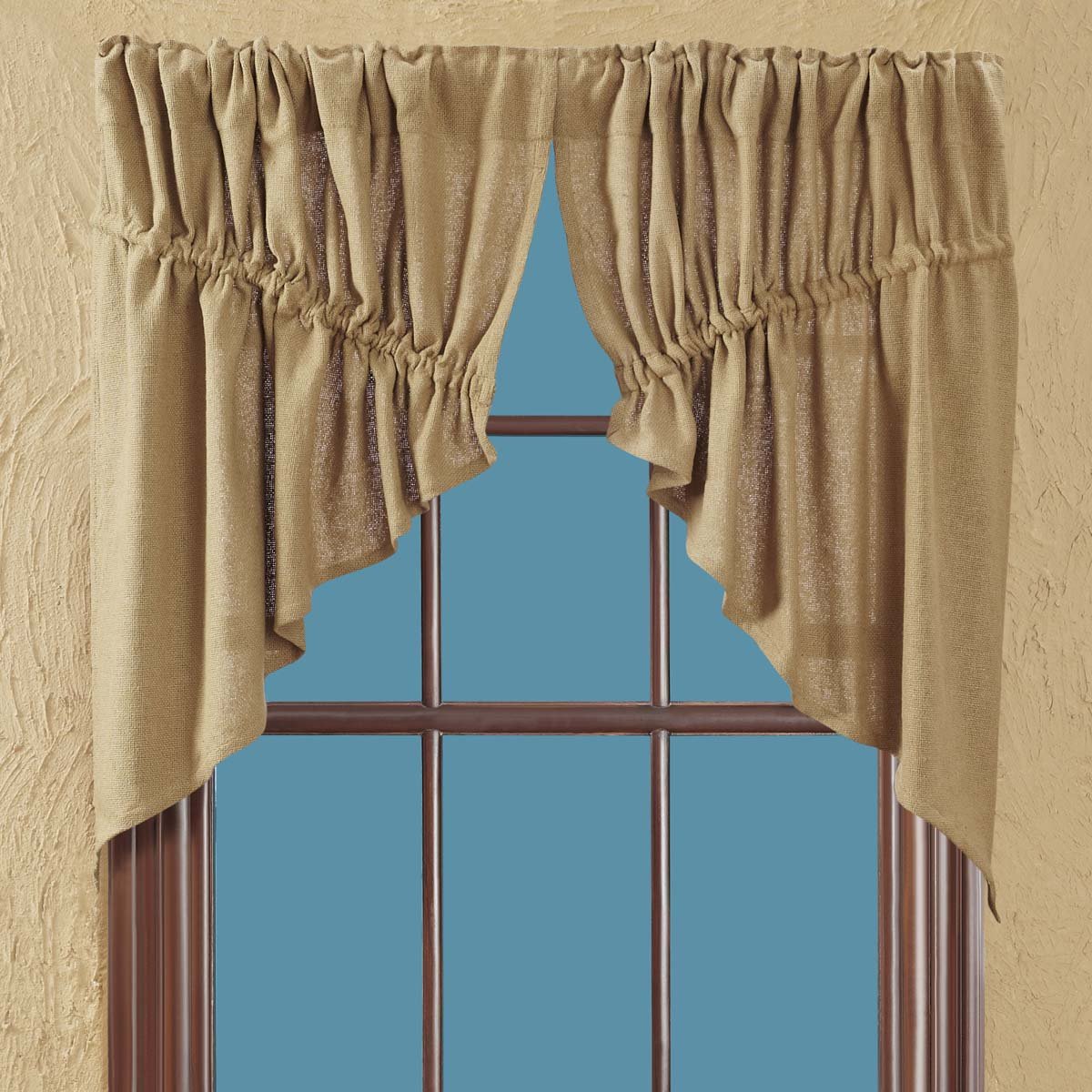 Farmhouse Kitchen Curtains Veranda Burlap Tan Swag Pair Rod Pocket