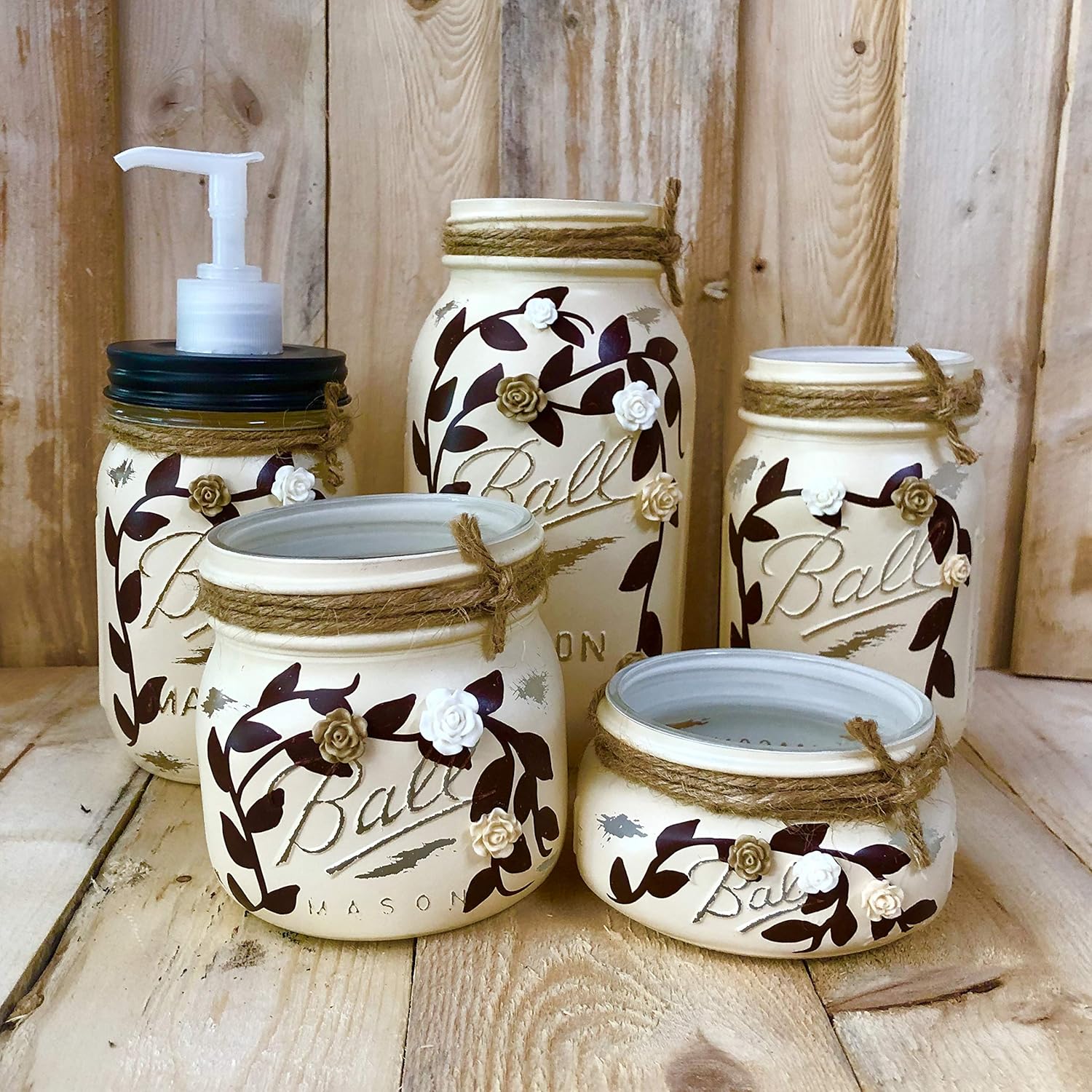 Amazon Com Cottage Chic Ivory Painted Mason Jar Bathroom