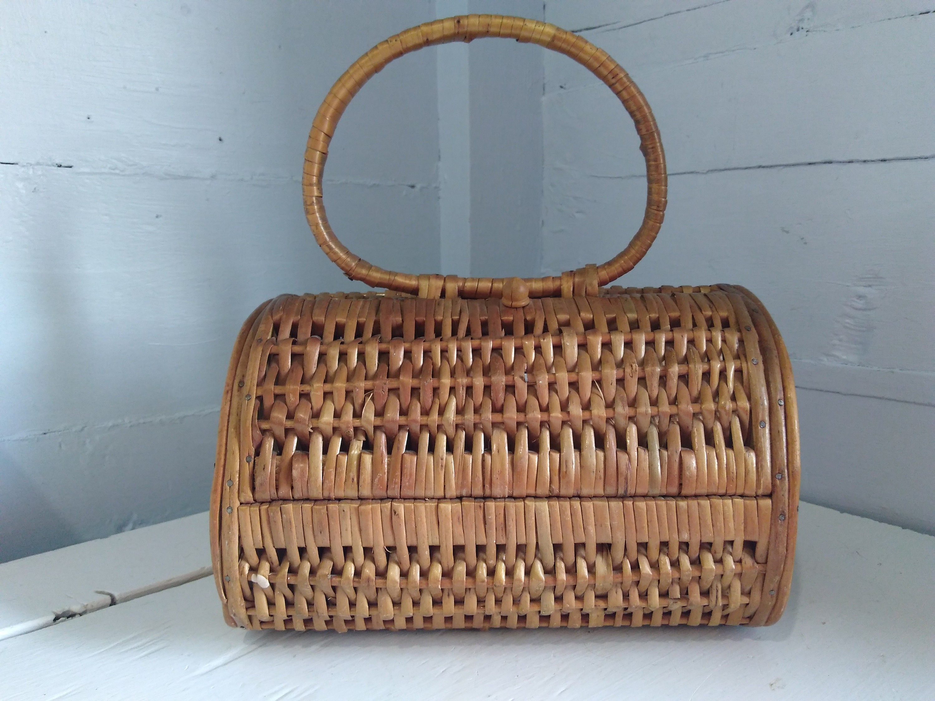 Vintage Wicker Basket Purse Gathering Basket Beach Picnic