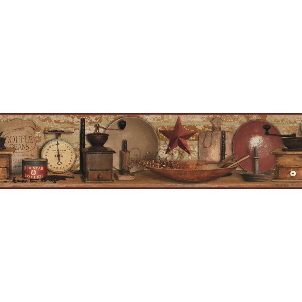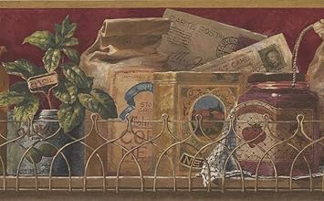 Wallpaper Wall Border Country Farmhouse Kitchen Spice Rack Vintage