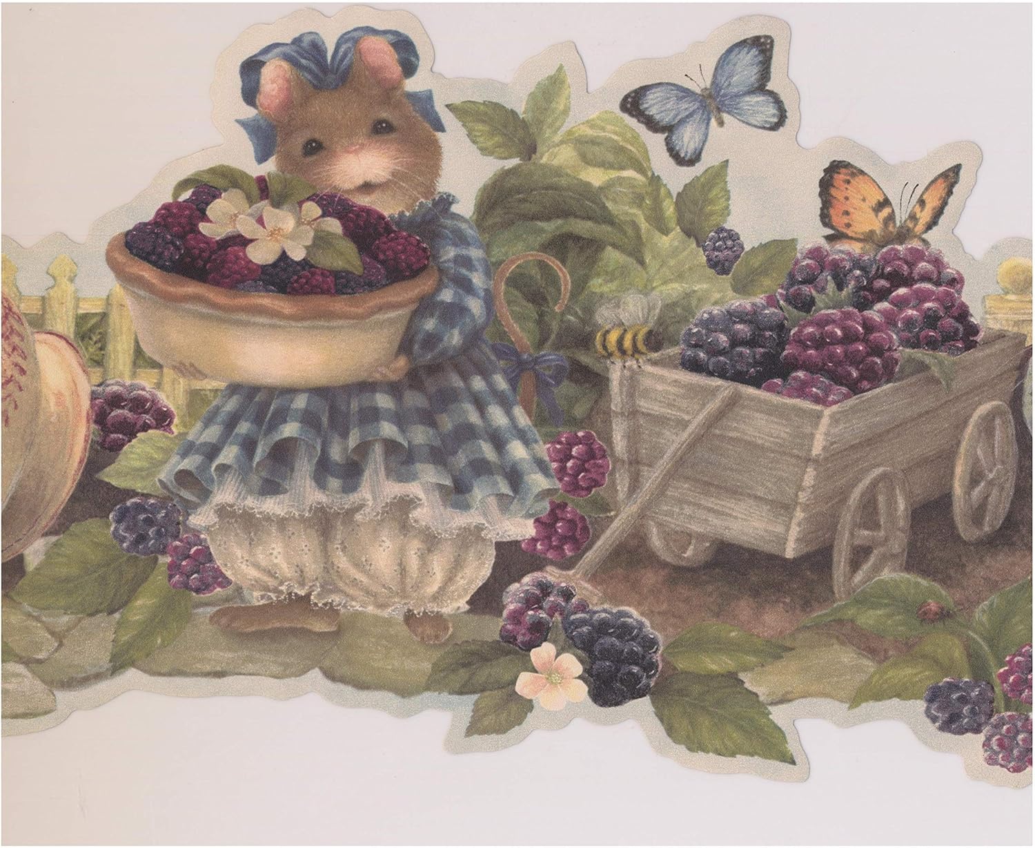 Mouse Offering Berries Farmhouse Wallpaper Border Retro Design