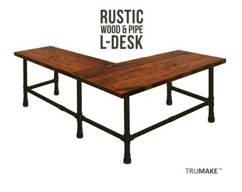 L Shaped Desk Industrial Pipe Desk Style Rustic Wood And Etsy