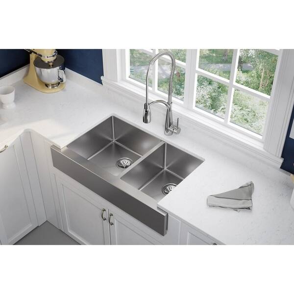 33 Leyden Stainless Steel Double Bowl Farmhouse Sink Stainless