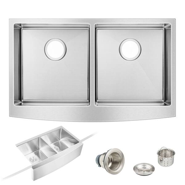 33 Atlas Double Bowl Stainless Steel Farmhouse Sink Curved