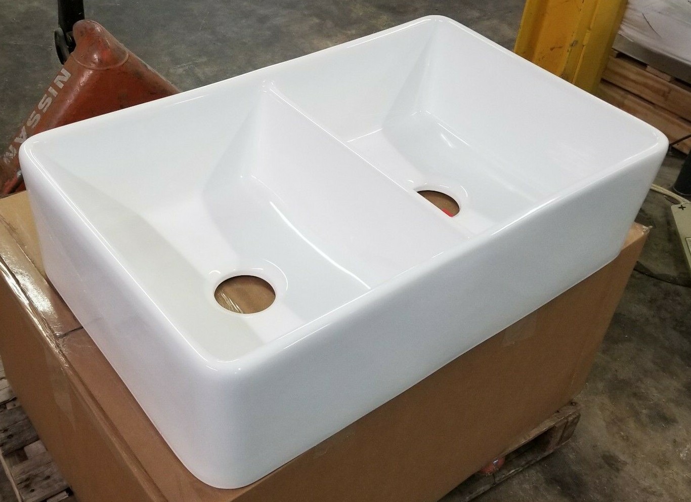 33 Reinhard Double Bowl Fireclay Farmhouse Sink White Kitchen