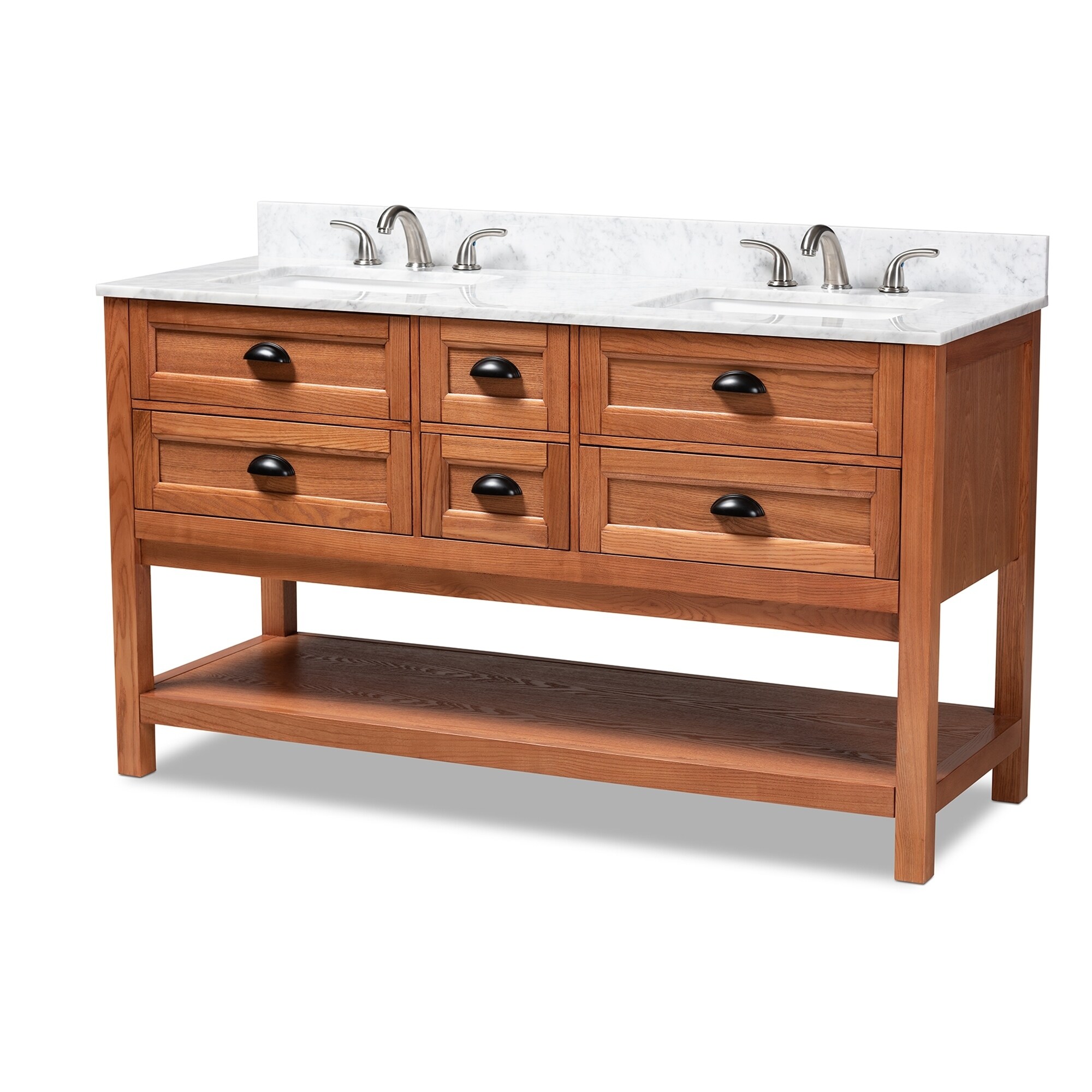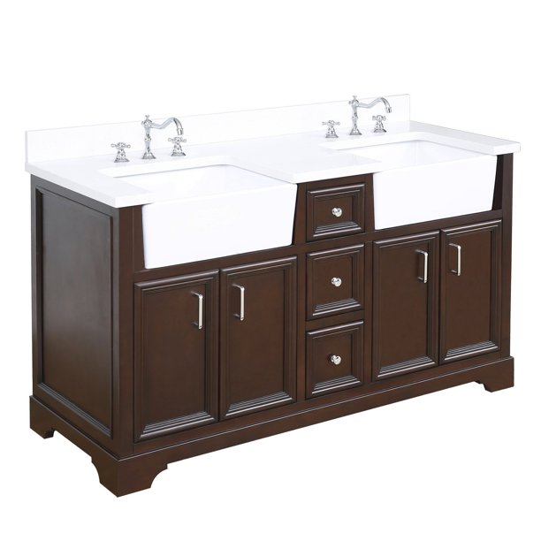 Zelda 60 Chocolate Double Farmhouse Bathroom Vanity With Quartz