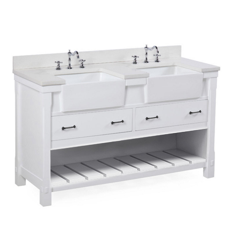Charlotte 60 Farmhouse Double Bathroom Vanity Apron Sink Quartz