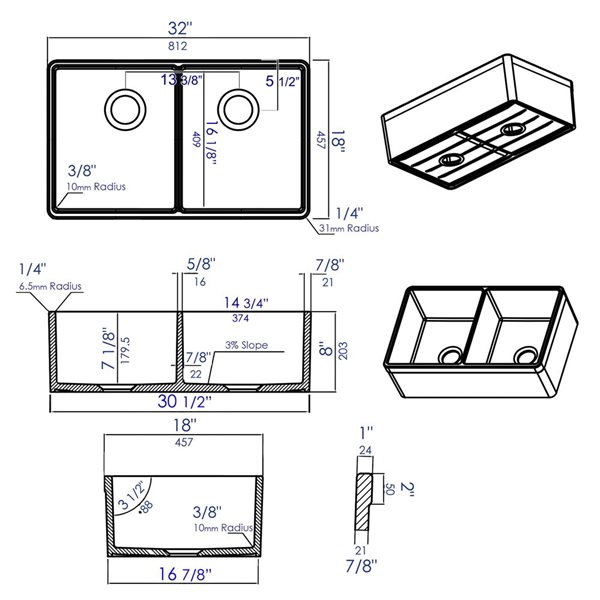 Alfi Brand 32 In X 17 75 In White Double Basin Drop In Apron Front