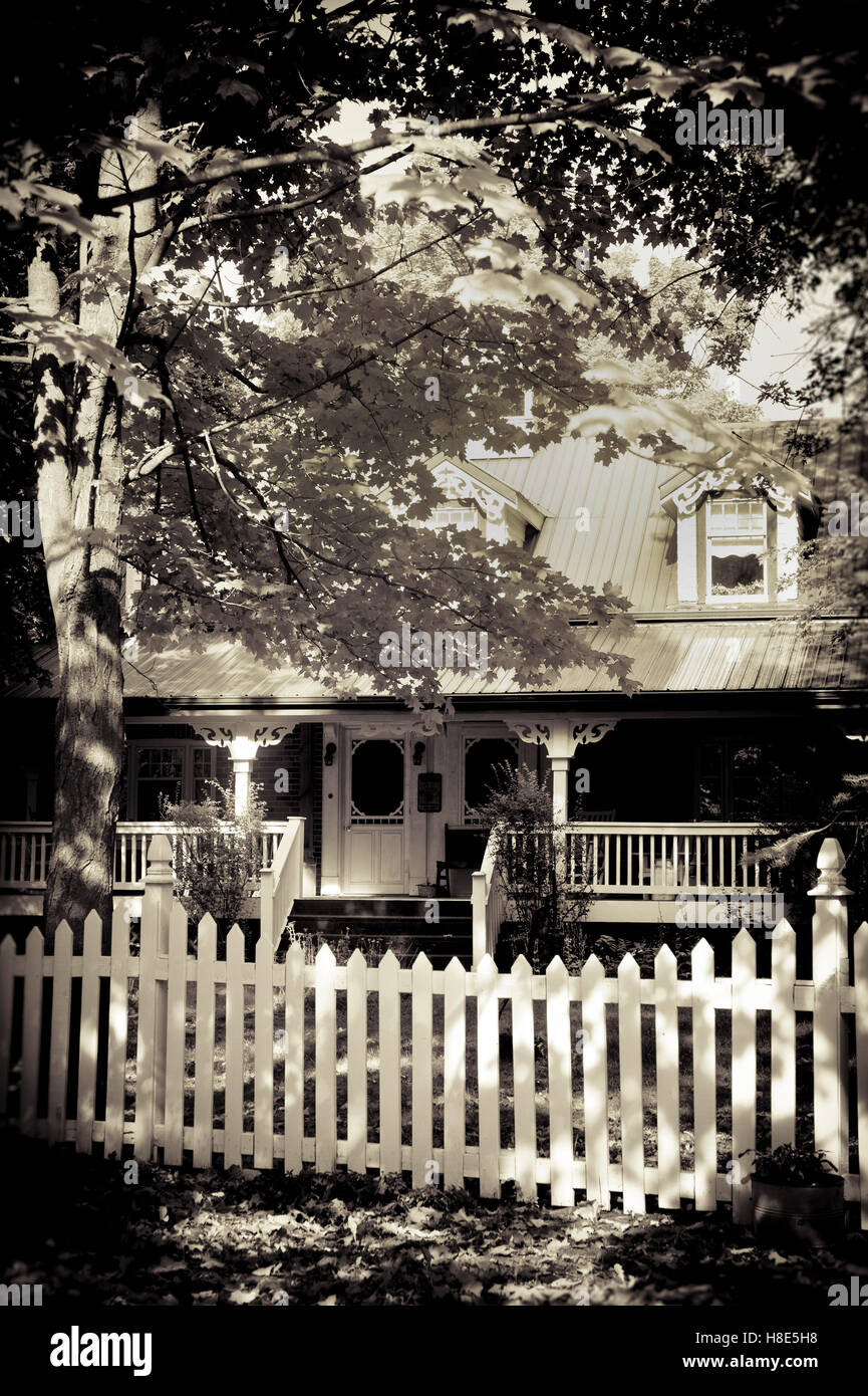 Old Country House With Porch And Rustic Wood Fence Stock Image