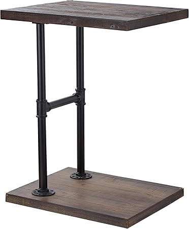 American Art Decor Wood Metal C Style End Accent Table Farmhouse