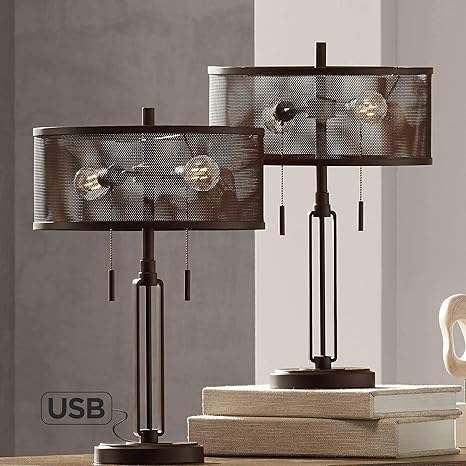 Dayn Industrial Rustic Farmhouse Accent Table Lamps Set Of 2 With