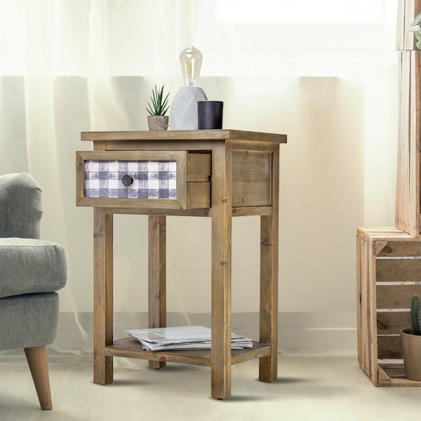 Rustic Wood End Side Accent Table Distressed Gray Farmhouse
