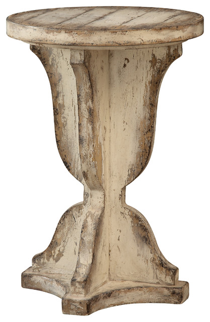 Slipper Aged Cream Round Accent Table Farmhouse Side Tables