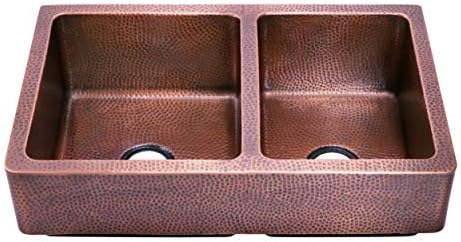 Zuhne Bari 33 Inch Double Bowl Copper Farm House Tall Curved Apron