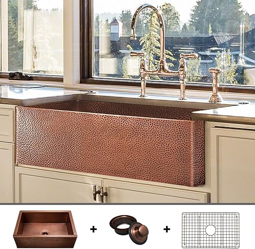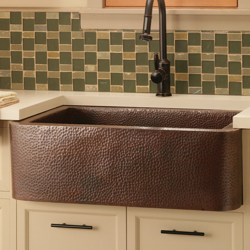 Novatto Farmhouse Apron Front Copper 33 In Single Bowl Kitchen