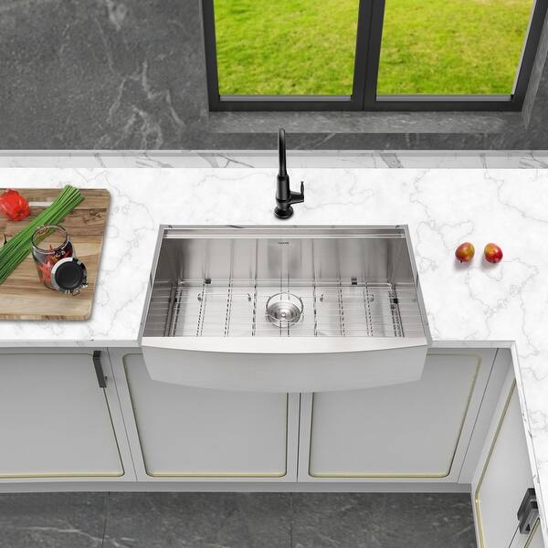 33 Inch Stainless Steel Single Bowl Curved Front Farmhouse Apron