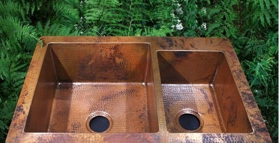 Copper Farmhouse Apron Sink Double Well 60 40 Split Natural Etsy