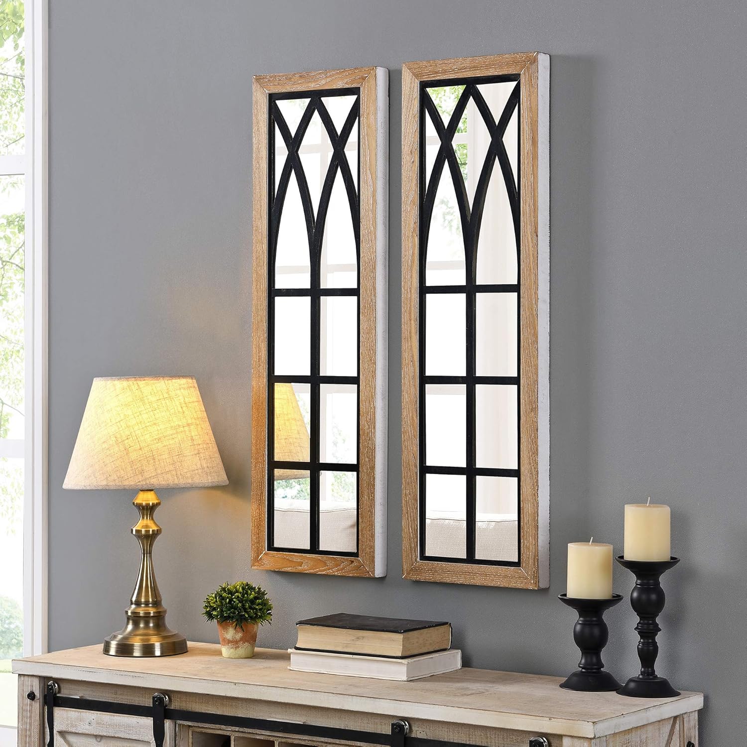 Rustic Farmhouse Arched Window Mirror Spring Living Room Decor