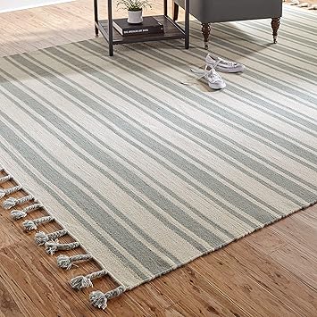 Spectacular Deals On Stone Beam New England Tassled Wool Farmhouse Area Rug 8 X 10 Foot Blue And Cream