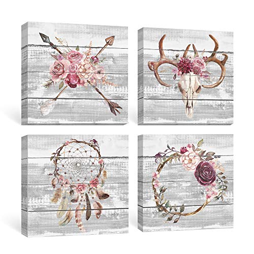 Sumgar Boho Wall Art Bedroom Rustic Pink Flowers Pictures