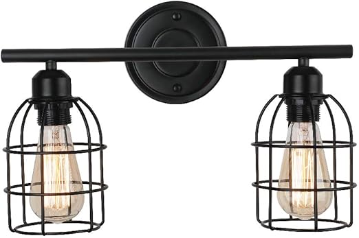 2 Light Black Vanity Light Create For Life Rustic Farmhouse Bathroom Lighting Metal Cage Wall Sconce For Bathroom Dressing Table Mirror Cabinets Vanity Table Amazon Com