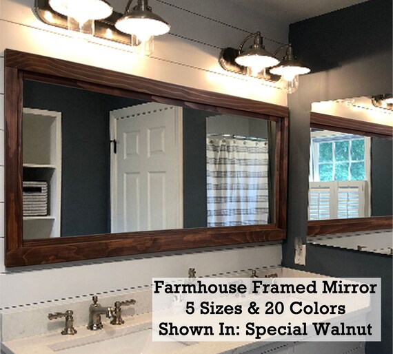 Dark Walnut Frame Mirror Farmhouse Mirror Framed Mirror Etsy